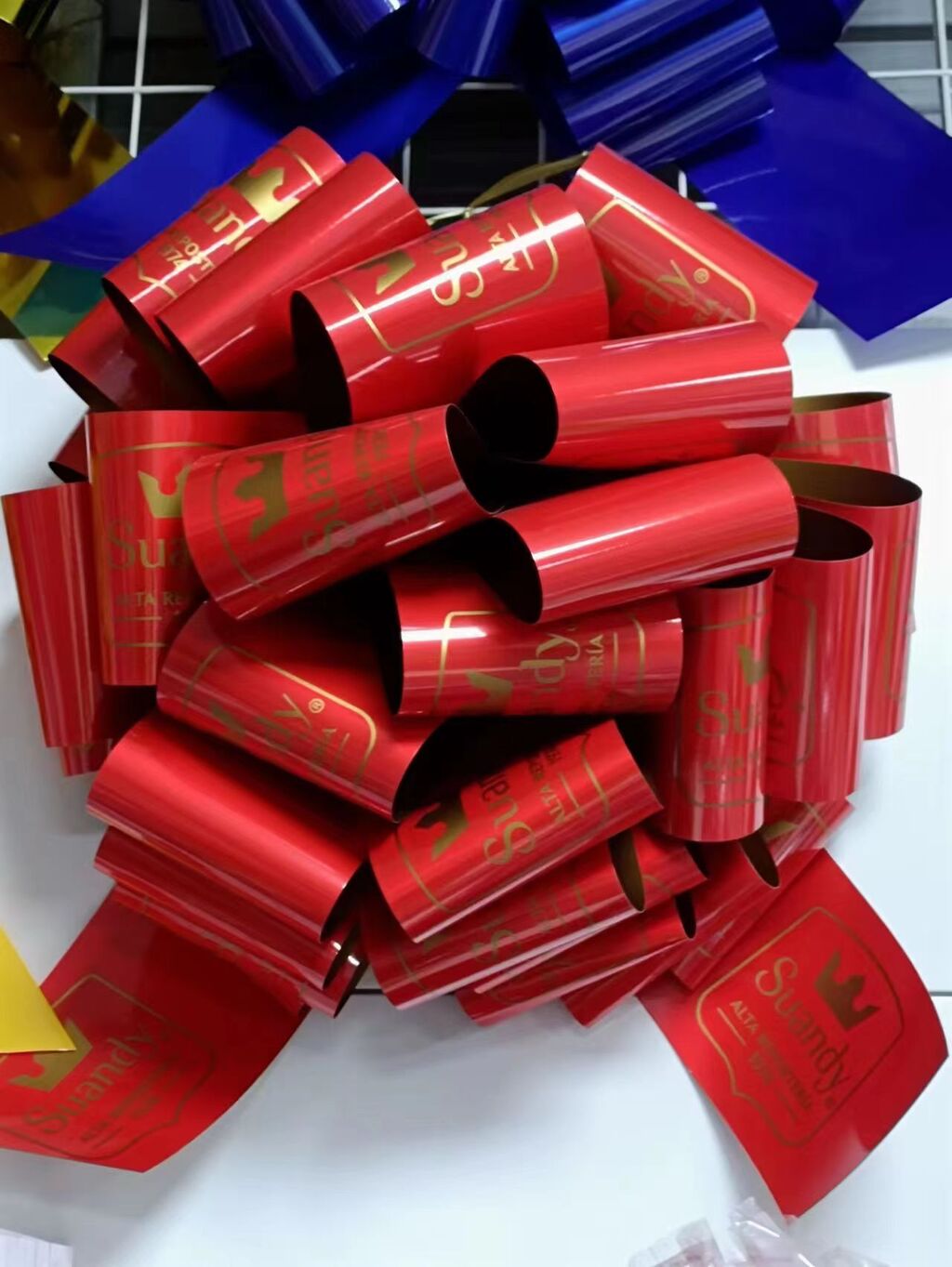 使用方法:此大蝴蝶拉花背面有3M胶或者磁胶,直接抽动丝带中间的辅助拉线即可成型,直接粘贴捆绑或吸附在想要装饰的地方,简单方便,利于烘托气氛增加喜庆庆祝效果!